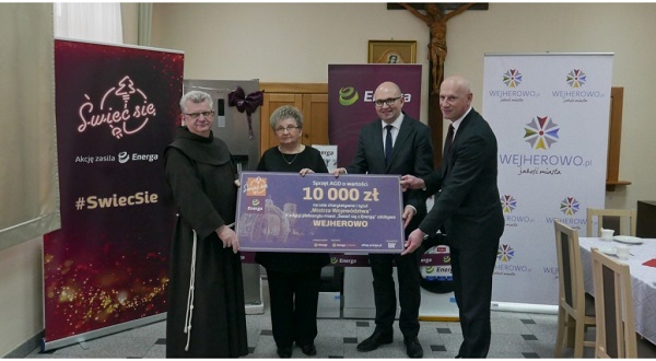 Wejherowo wygrało na Pomorzu w wojewódzkim etapie plebiscytu „Świeć się z Energą”. Zwycięskie miasto zdobyło energooszczędny sprzęt AGD, który trafił do kuchni Św. Franciszka oraz do przytuliska Zgromadzenia Sióstr Albertynek. Wejherowo uzyskało tytuł najładniej oświetlonej miejscowości w województwie pomorskim w okresie świątecznym, a w plebiscycie ogólnopolskim zajęło wysokie 4. miejsce otrzymując w głosowaniu internautów 1535 głosów. Uroczyste przekazanie nagród odbyło się w Domu Pielgrzyma przy Klasztorze OO. Franciszkanów. - Dziękuję wszystkim, którzy oddali swoje glosy na Wejherowo, a Grupie Energa za ufundowane nagrody. Gdyby nie było konkursu, nie było by tych cennych nagród dla kuchni Św. Franciszka i przytuliska Sióstr Albertynek – powiedział Arkadiusz Kraszkiewicz, zastępca prezydenta Wejherowa.