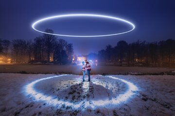 – Nagroda główna tym razem trafiła do Radosława Dybały, który w symboliczny sposób podkreślił bliskość pary osób, nie używając tradycyjnych, świątecznych iluminacji. Śnieg, oświetlony dom w oddali, ciepłe swetry ze świątecznym motywem i chroniący, świetlisty krąg opowiadają ciekawą, nieoczywistą historię, która również daje szansę na interpretację. Symetryczność kompozycji i dynamiczna ogniskowa dużo mówią o zmyśle obserwacji i zaangażowaniu Autora w proces twórczy. Gratuluję takiego podejścia i nagrody! – dodaje Lidia Popiel.